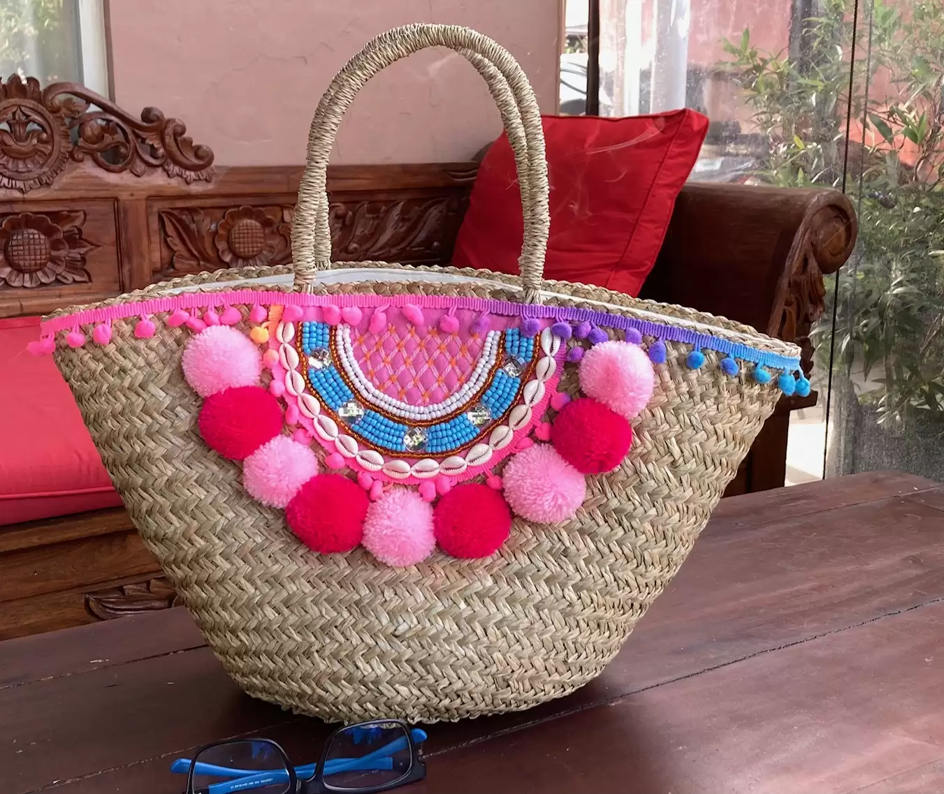 Handmade Straw pompom Bags from Bali. Suitable for daily bags and holiday or Beach Bags.